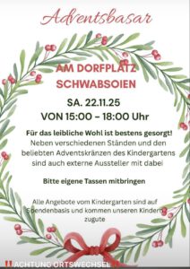 Adventsbasar am 22.11. von 15-18 Uhr am Dorfplatz in Schwabsoien